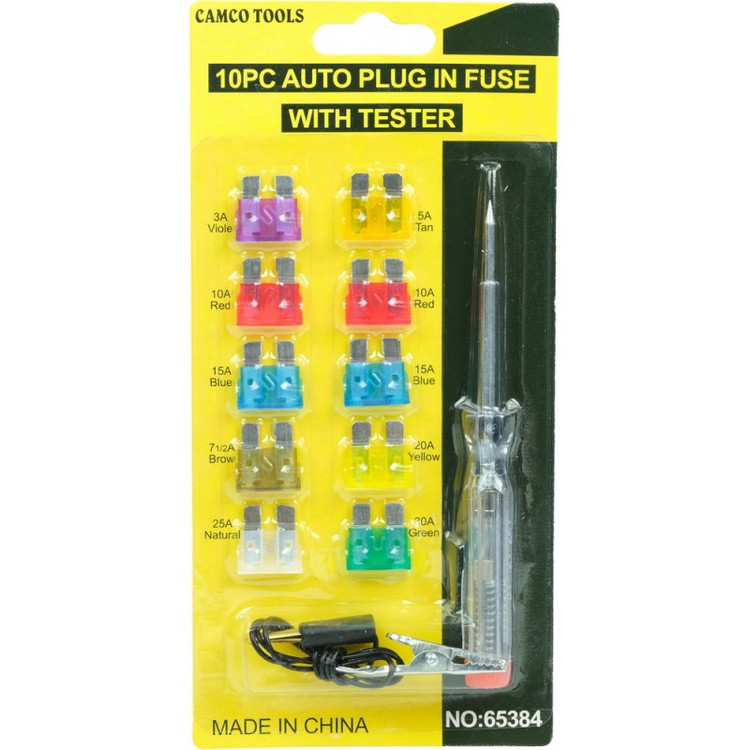 مورد استفاده برای دستگاه های الکترونیکی، انواع خودروها و ... تستر سازگار با ولتاژهای 6، 12 و 24 ولت به همراه کابل اتصال تست و عیب یابی آسان همراه مجموعه 10 فیوز یدک 3 تا 40 آمپر